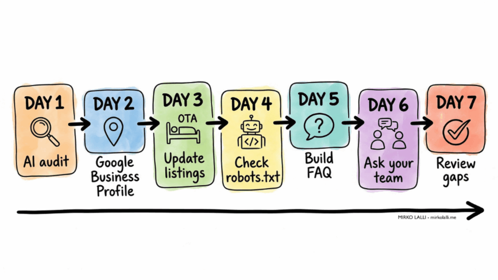 Il terzo è un audit delle schede OTA. Booking, Expedia, le piattaforme che usi. Se la descrizione non è stata toccata in due anni, quella è la versione di te che i sistemi AI stanno servendo ai tuoi potenziali ospiti.